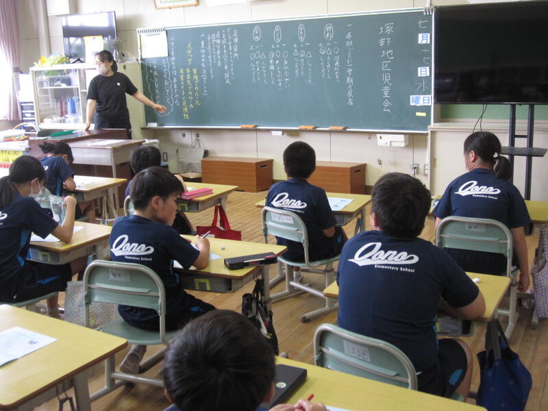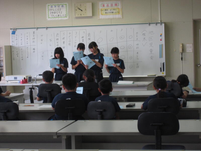 6年生を中心に1学期の集団登校の反省と今後の改善点、夏休みの過ごし方や地域内の危険個所について話し合ったり、確認したりしました。