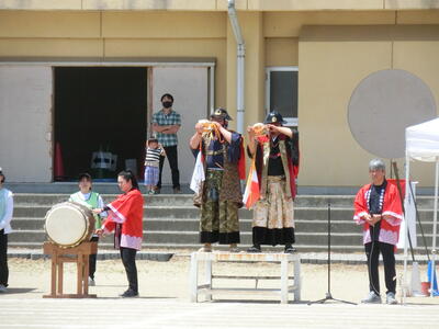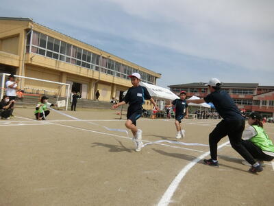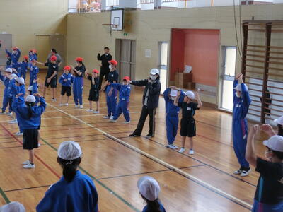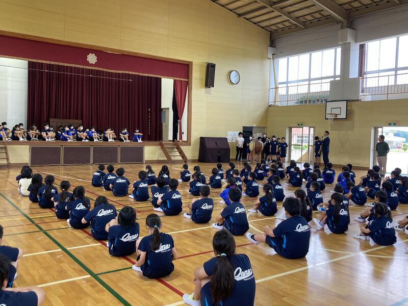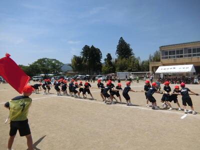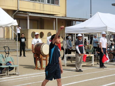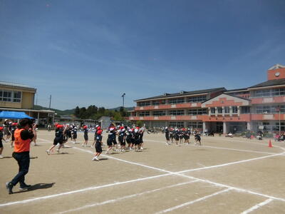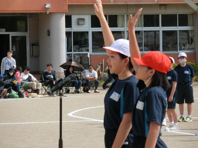 5年生が中心となって応援団を作り、応援団の掛け声に合わせて全校生でエールを送りました。