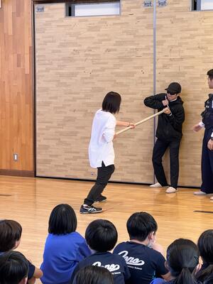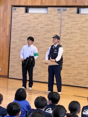 相馬警察署生活安全課、大野駐在所より警察官の方に来ていただきました。不審者役もやって下さいました。