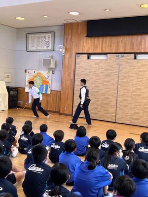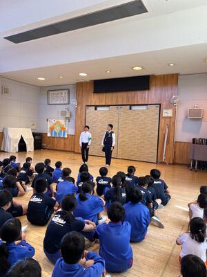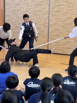 職員による不審者対応のあとで、警察署の方に犯罪に巻き込まれないための心がまえについてお話ししていただきました。