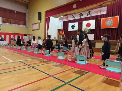 たくさんのお兄さん、お姉さんに見守られて、無事に入学式を終えることができました。