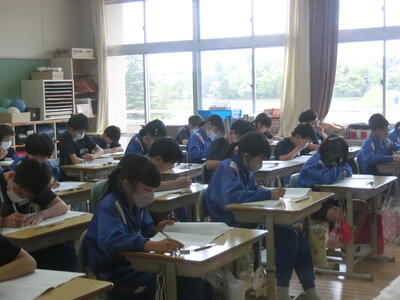 1年生は書写の学習。良い姿勢ができるかな。