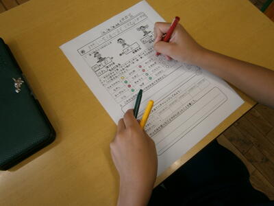 ワークシートに記入したり、問題に答えたりして学んでいきます。