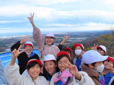 5年生は緑の少年団活動の一環で鹿狼山に登りました。