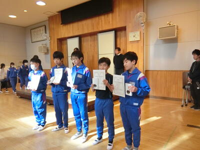 2023年11月30日 15時37分全校集会で賞状を伝達しました。