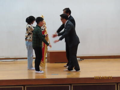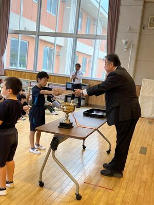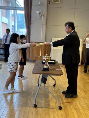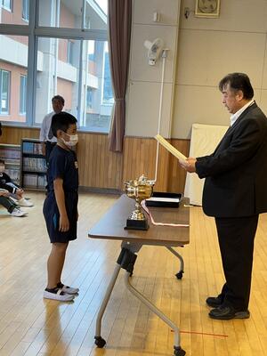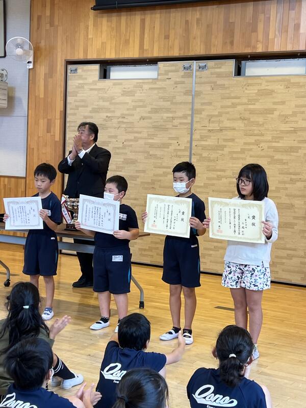 お昼の時間の全校集会があり、賞状伝達がありました。