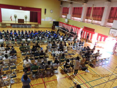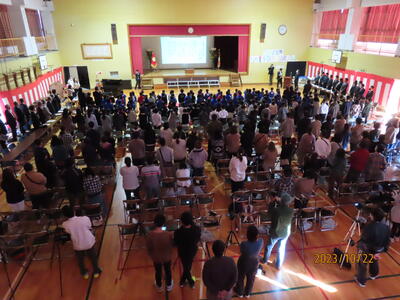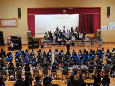 明治6年(1873年)10月に石上小学校として設立されてから150年になりました。10月22日に150周年記念式典が開かれました。