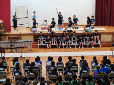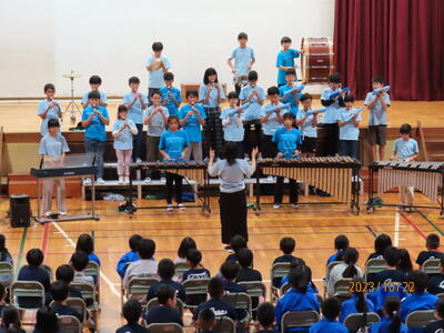 5年生合唱「こげよマイケル」合奏「空も飛べるはず」