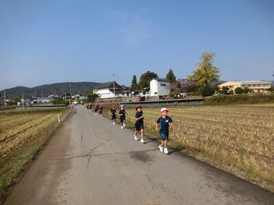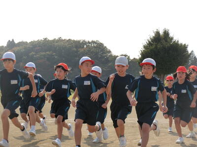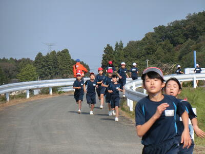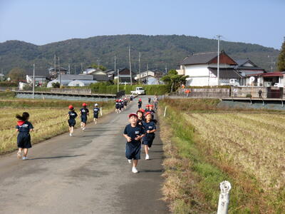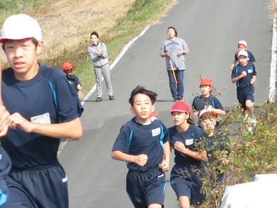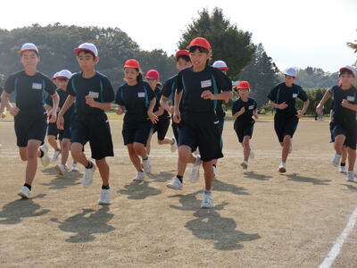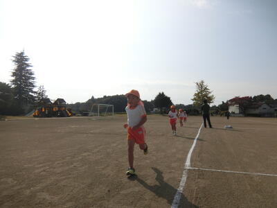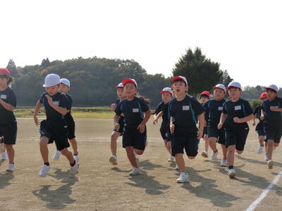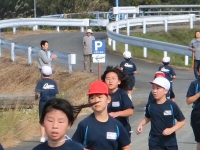 幼稚園生から6年生まで、全校で持久走記録会をしました。