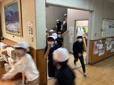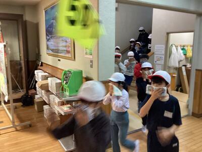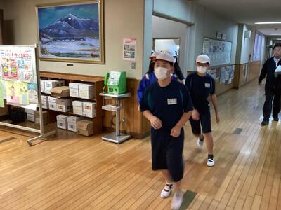 本来はすぐに校庭に出て避難しますが、あいにくの雨で、校庭が使えなかったので、やむなく校舎内を避難しました。