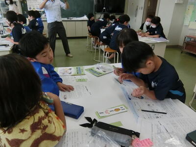 近くの人どうしで、見せ合って、自分の考えを説明します。