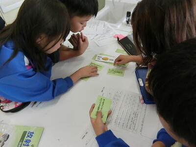 3年生は、カードを使って、放射線の特徴について学習していきます。
