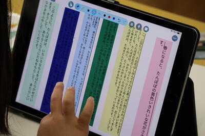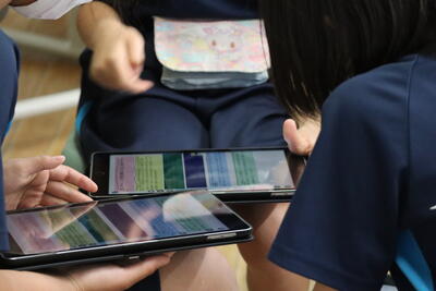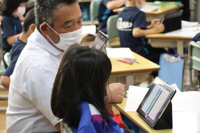 タブレット端末や大型モニターなど、ICT機器を使いながらの授業でした。これからこうしたタブレットを使った授業が増えていきそうですね。