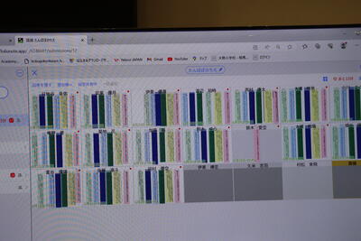 大型モニターに全員のタブレットを表示し、みんなで確認できるようにします。