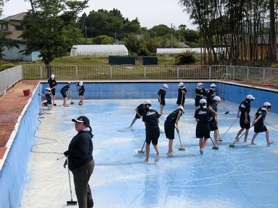 昨日、5・6年生と先生方で、プール清掃を行いました。