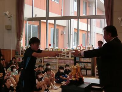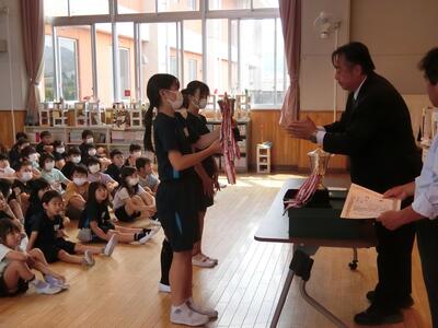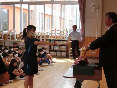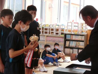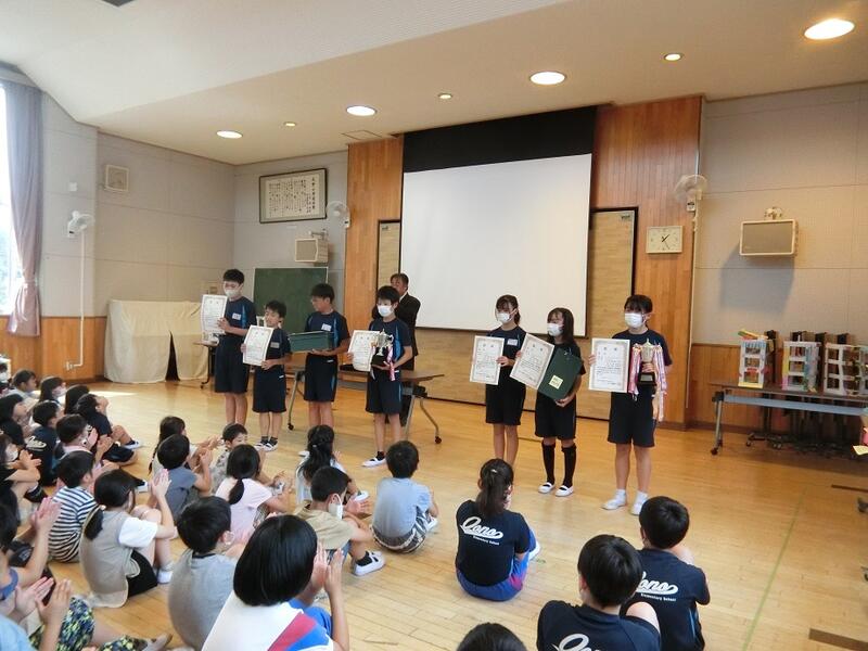 今日の全校集会で、先月31日に行われた相新体育大会でいただいた賞状の披露がありました。