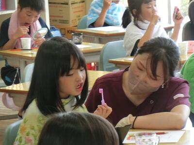学年に合わせて、いろいろな工夫をして指導をしていいただきました。歯科医師会のみなさん、本当にありがとうございました。