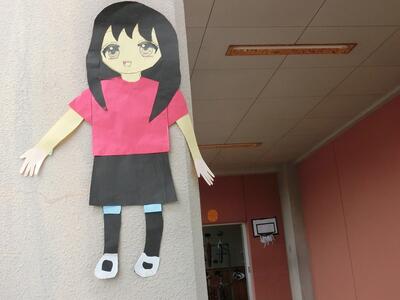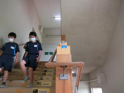 6年生の図工では、ある場所から見た時だけ見える作品を作りました。