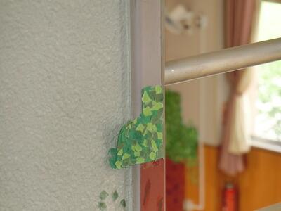 遠近感や高低差を使って、ある場所からしかみることができない作品です。1週間展示していますので