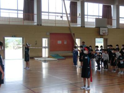5年生を応援団長に、全員で6年生にエールを送りました。