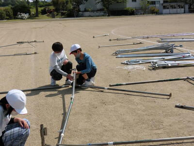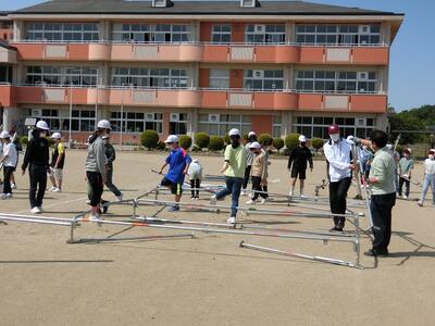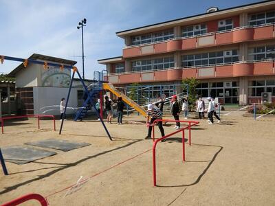 先生方の動き方と、子どもたちの避難の仕方を訓練しました。