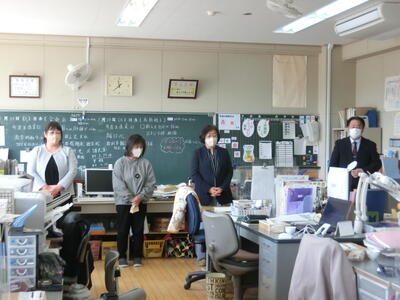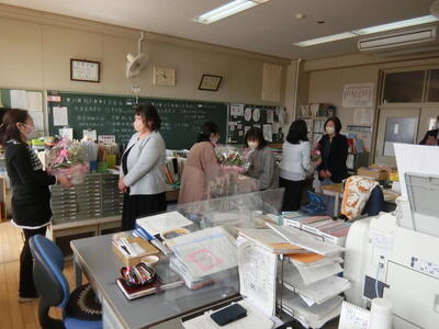 明日は離任式が行われますが、職員室では一日早く、職員送別会が行われました。