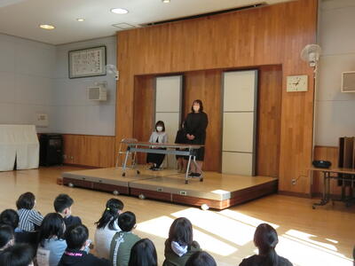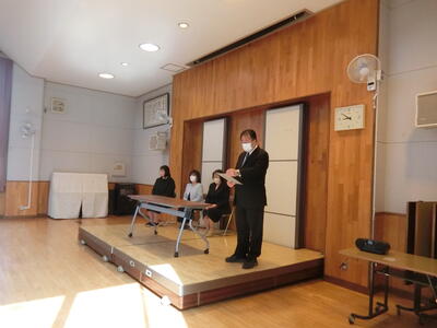 6年生の吉田吏藍さんが、代表でお別れのあいさつをしました。それぞれの先生方との思い出を交えてお話しました。