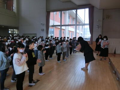 あっという間に感じた6年間だったかもしれません。4月からは精いっぱい中学校生活を楽しんでほしいと思います。二度とない青春を楽しんでください。