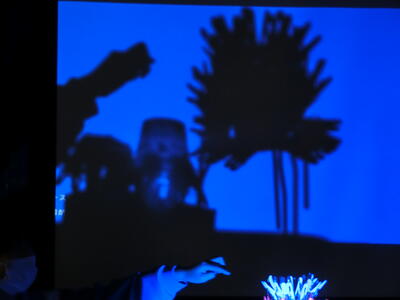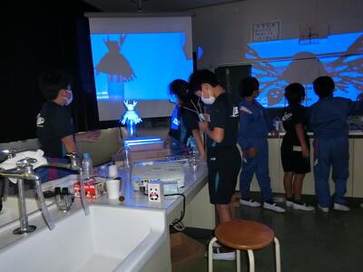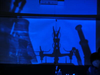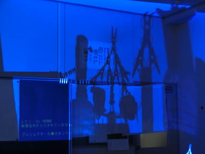 4年生の図工では、光源からの光をスクリーンに映して、影を使って作品を投影する活動があります。