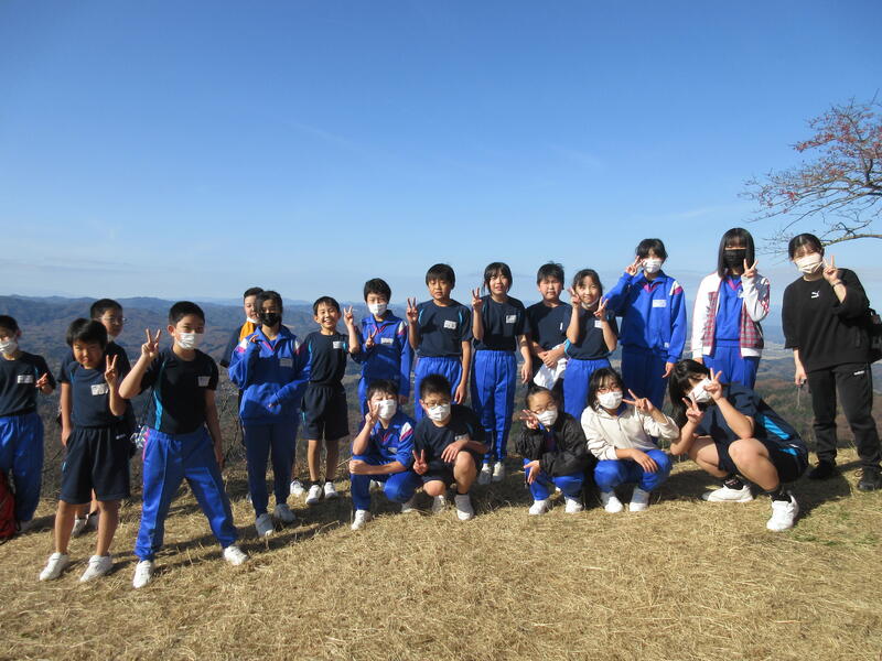 登山口まではバスで行き、そこから登りました。何度か上っている子もいましたが、中には初めて登る子もいました。頂上では、眼下に広がる景色に見惚れてしまいました。写真は、頂上で記念撮影してものです。