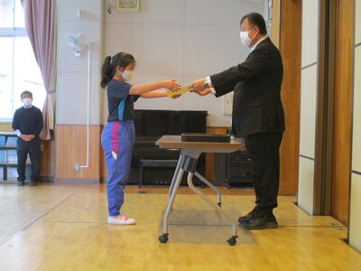 第54回 福島県児童作文コンクール 特選 菊地凜さん、入選 中井田昇さん、佳作 村松来飛さん、町田千紘さん、木幡悠馬さん、伊達叶真さん。