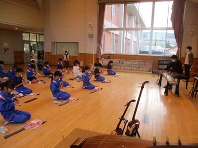 原町在住の菅野幾代先生とお弟子さんたちをお迎えして、お琴をはじめ、邦楽の生演奏を聴きました。