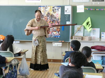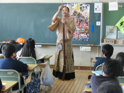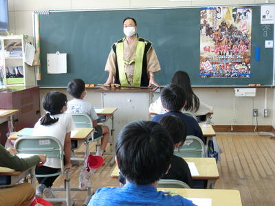 今日は、講師をお迎えして、野馬追のことをいろいろ教えていただきました。