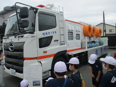この車は排水ポンプ車でした。震災の津波や、台風の水害を経験した相馬市では、こうした排水ポンプ車を整備しています。