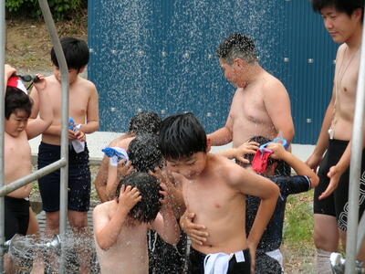 シャワーを浴びたら、体をよくふていて、水が垂れないようにして教室に戻りましょう。