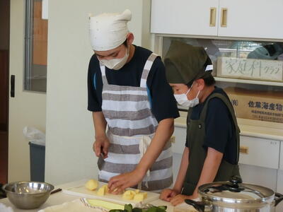 ジャガイモは茹で芋にしていきます。料理男子、かっこいいですね。
