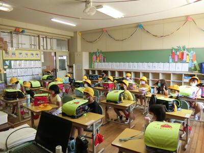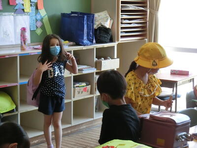 初日ということで少し緊張気味ですが、さっそく教室での学習やプール学習なども体験して、慣れてきたようです。