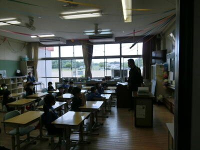 子どもたちは、教室での避難の仕方を訓練し、警察の方のお話もしっかりと聞いていました。
