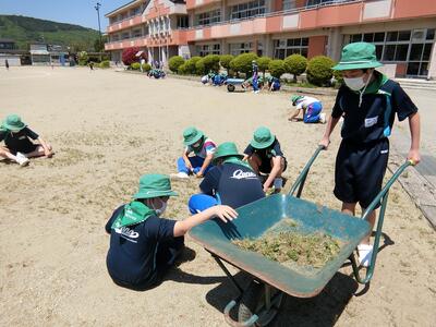 さっそく、活動に取り組みました。今日は校庭の除草でした。