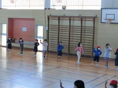 開いて、左、右、丸を作って、開いてパン。振り付けは多くありませんが、音楽に合わせて踊ろうとするとぎこちなくなってしまいます。なめらかに踊れるようになるにはまだまだ練習がいつ様ですね。運動会までに踊れるように頑張りましょう。