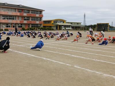 5・6年生は団体種目で全員リレーをします。今日はその合同練習会です。
