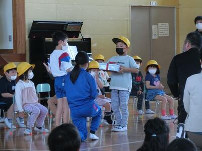 2年生から1年生に、アサガオの種をプレゼントしました。大きく育ててね。