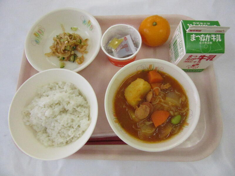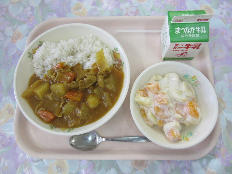 4月10日(月)ポークカレー、牛乳、フルーツヨーグルト和え