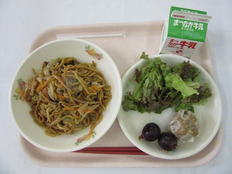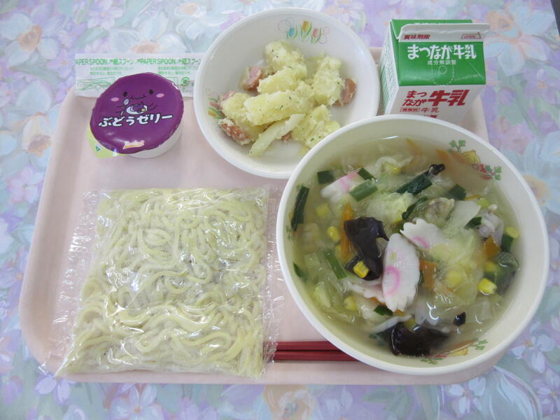 4月19日(水)塩タン麺、牛乳、ジャーマンポテト、ぶどうゼリー☆鉄分アップ献立