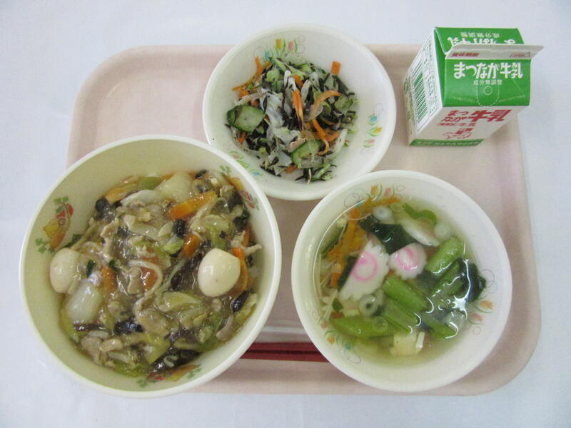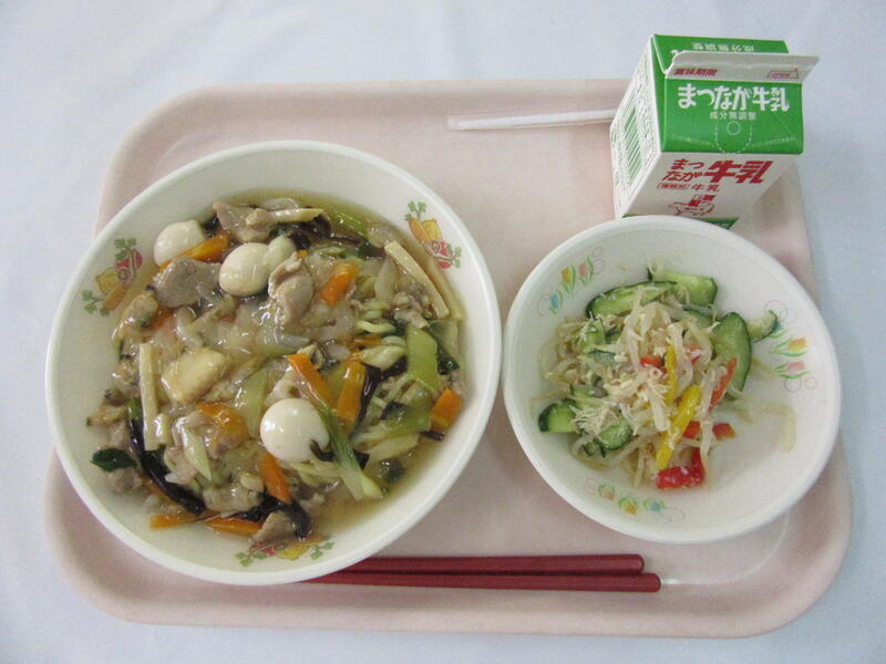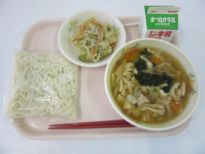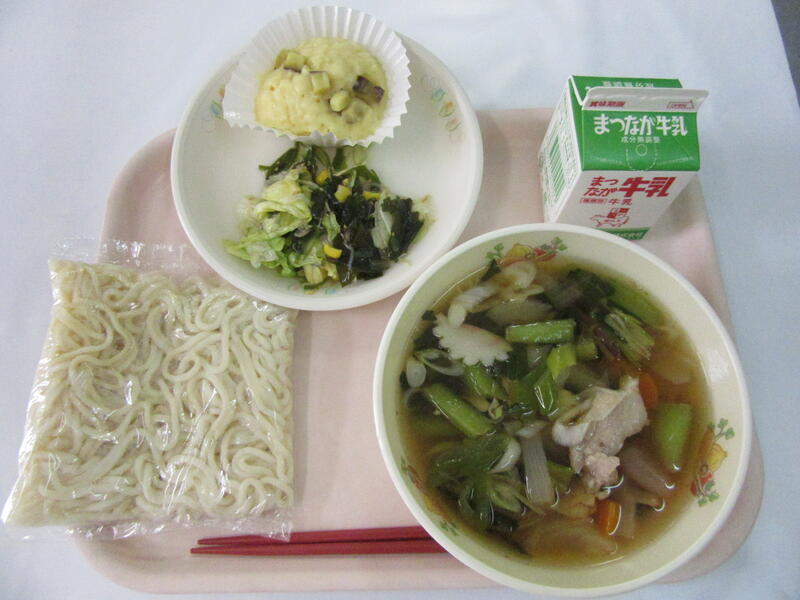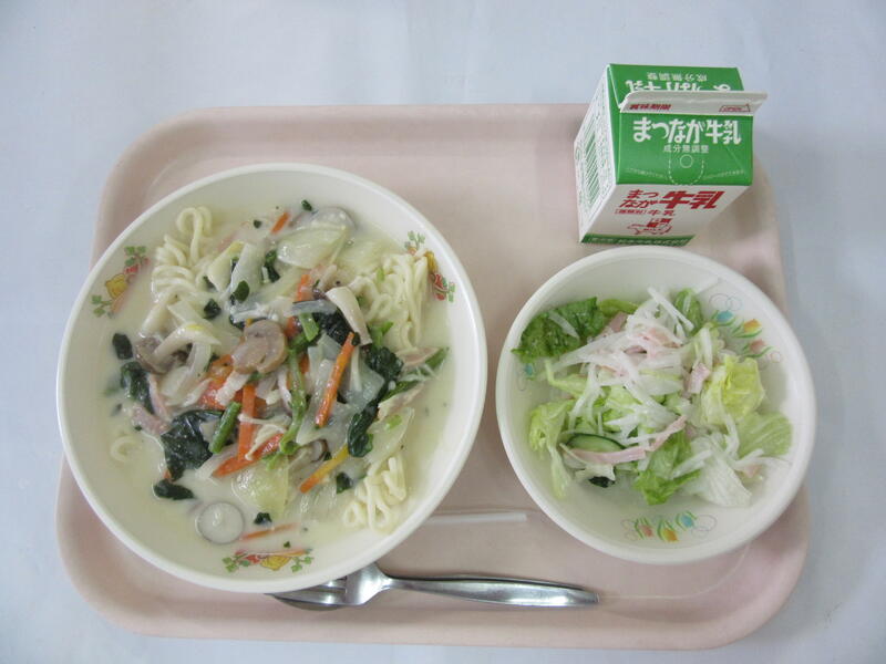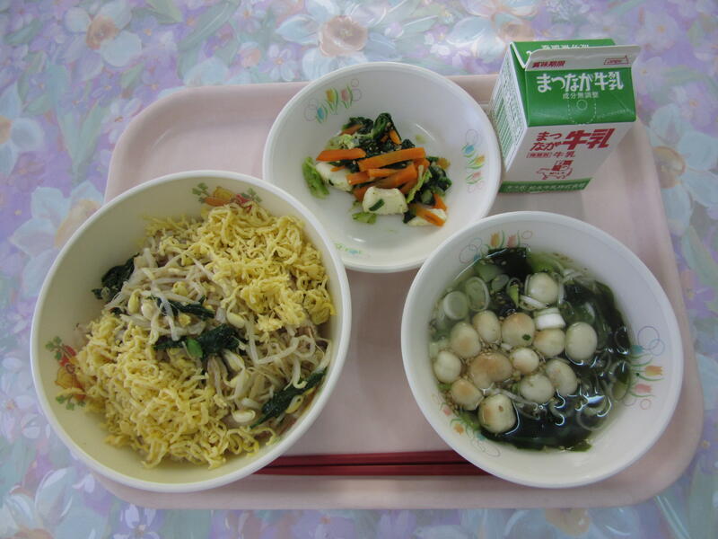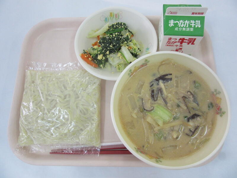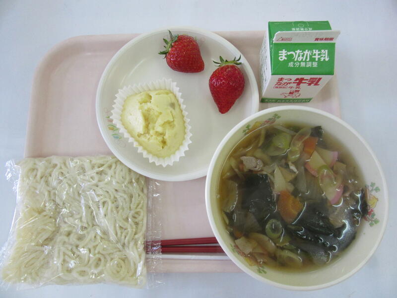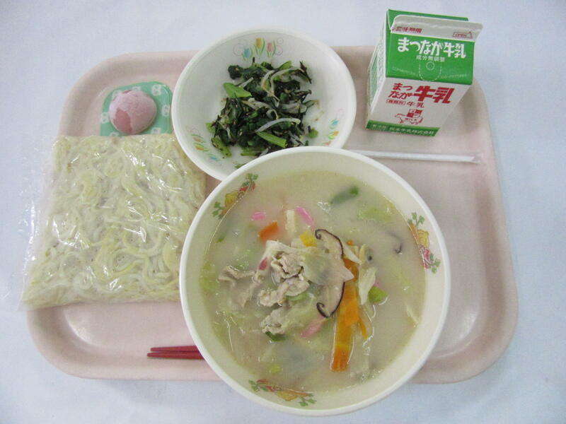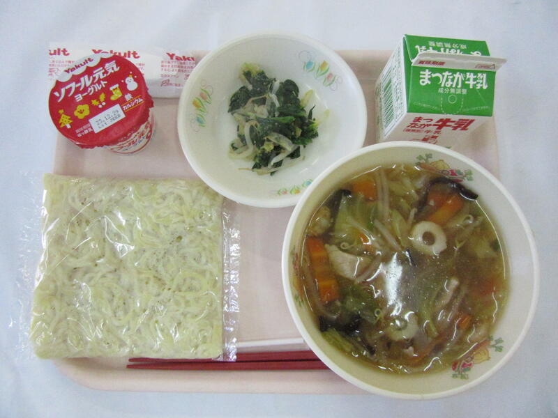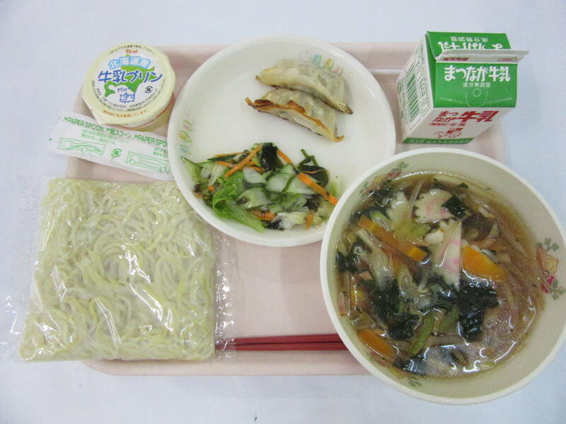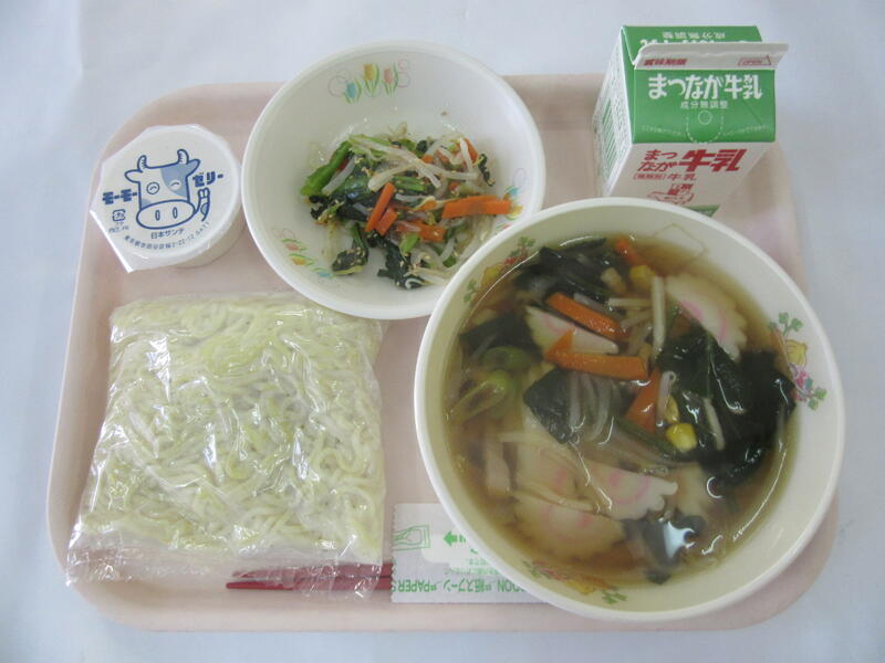 しょうゆラーメン、牛乳、モーモーゼリー、小松菜サラダ☆カルシウムアップ献立☆