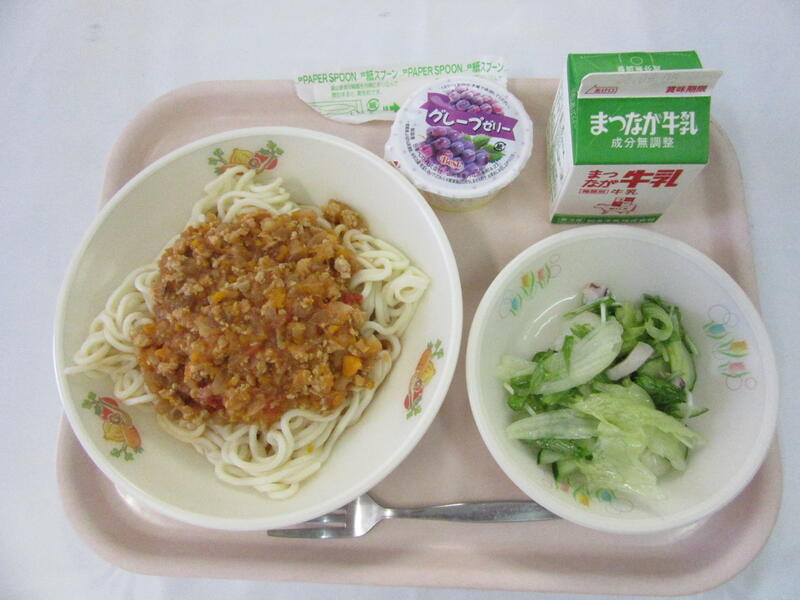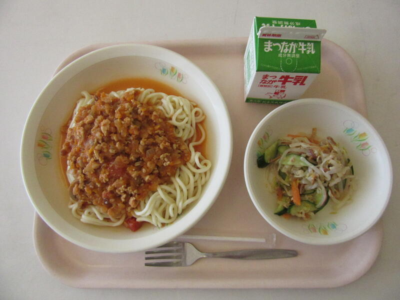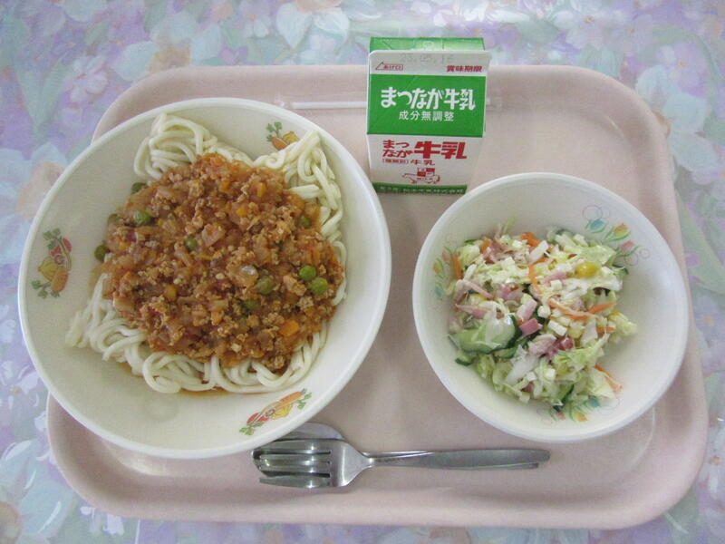 5月10日(水)ミートソーススパゲッティ、牛乳、コールスローサラダ