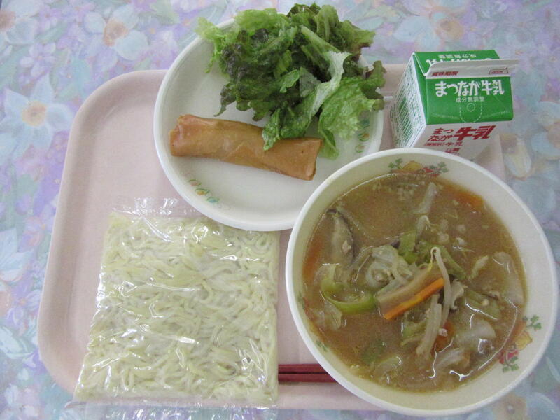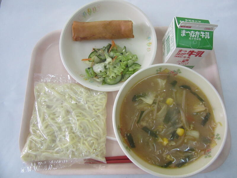 3月6日(水)みそラーメン、牛乳、春巻き、チョレギサラダ
