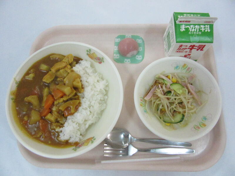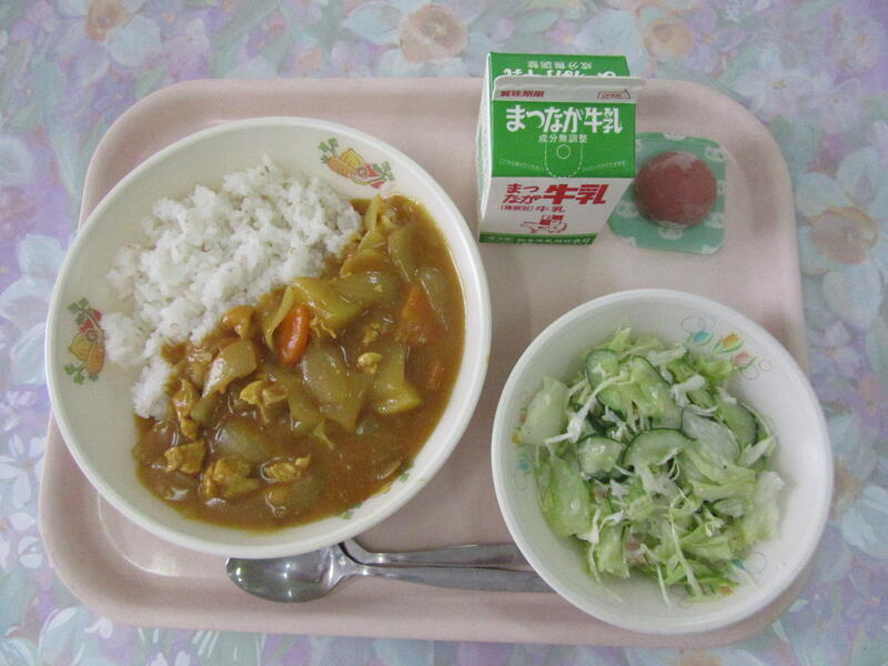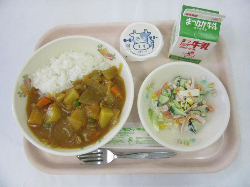 5月22日(月)チキンカレー、牛乳、シーザーサラダ、一口ゼリー