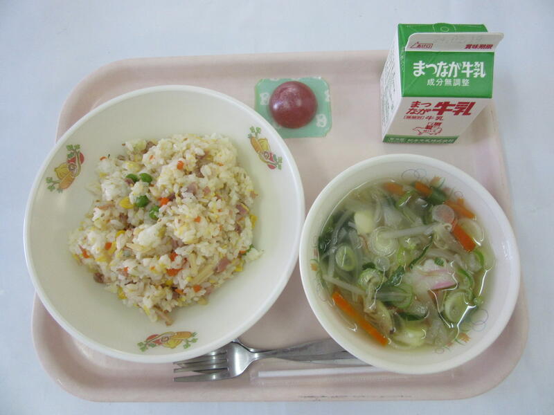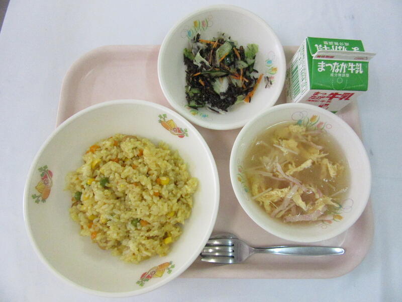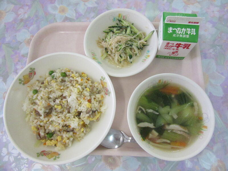 6月6日(火)五目チャーハン、牛乳、バンバンジー、チンゲンサイのスープ