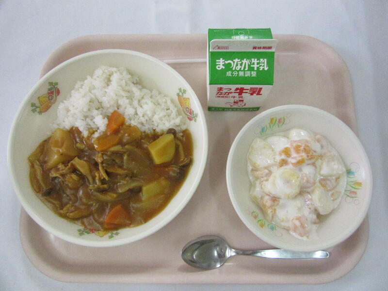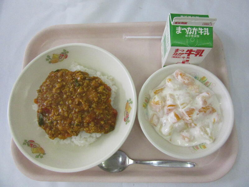 6月9日(金)ドライカレー、牛乳、フルーツヨーグルト和え